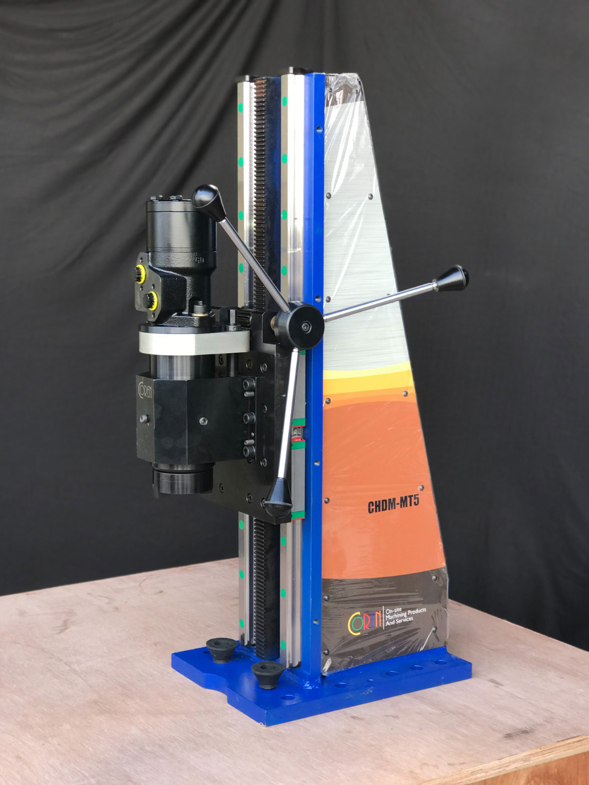 The machine is available in two models: the CHDM-0100 and the CHDM-0200. Both models are driven by hydraulic power and feature a spindle with ISO-40/MT-4/MT-5 specifications. The CHDM-0100 can handle drill sizes ranging from Ø25 mm to Ø80 mm and tap sizes up to M80, while the CHDM-0200 can handle drill sizes ranging from Ø25 mm to Ø120 mm and tap sizes up to M110.